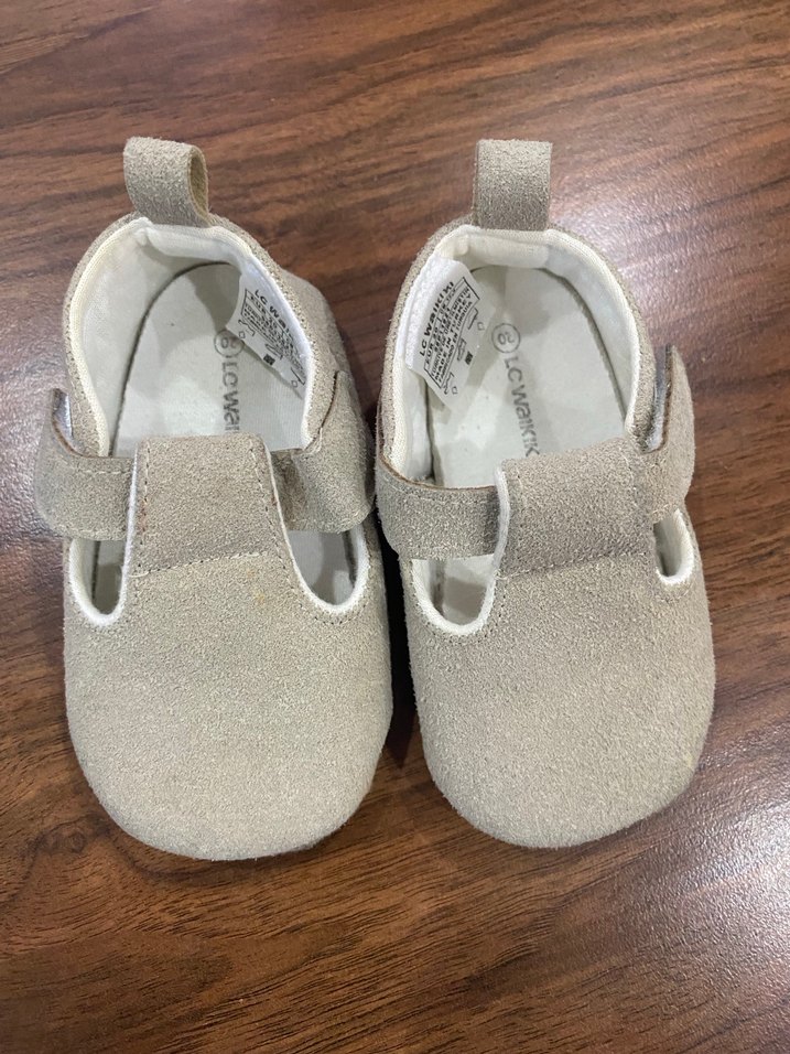 Bej süet malzemeden yapılmış, tokalı ve düz desenli erkek bebek ilk adım ayakkabısıdır. Yumuşak ve rahat yapısıyla erken yürüyüşler için uygundur.