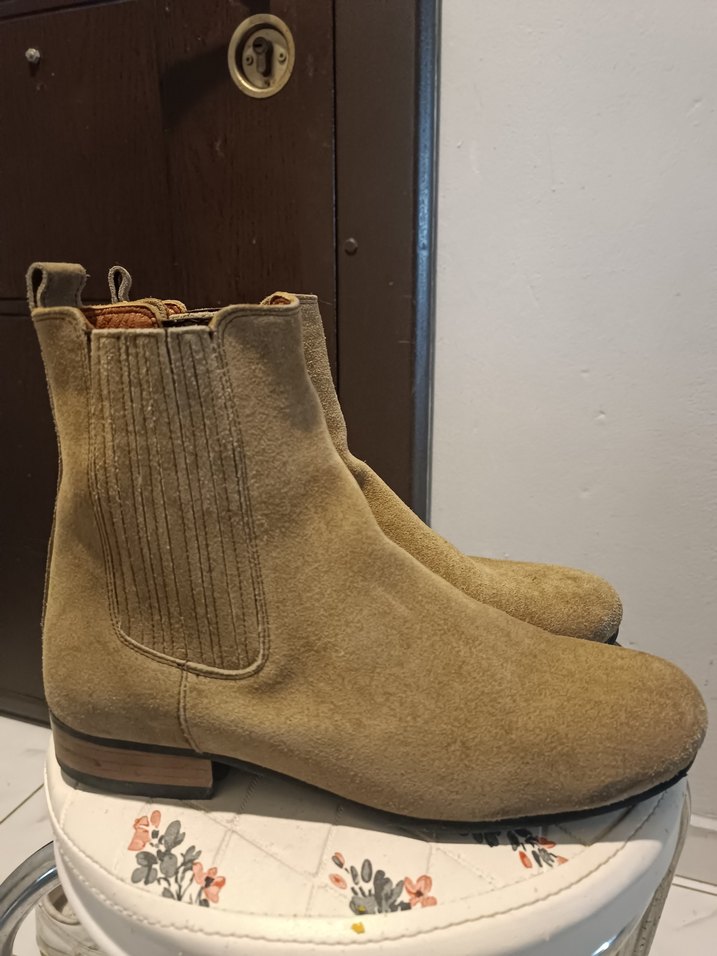Bej Süet erkek Bot, Kalın Topuklu