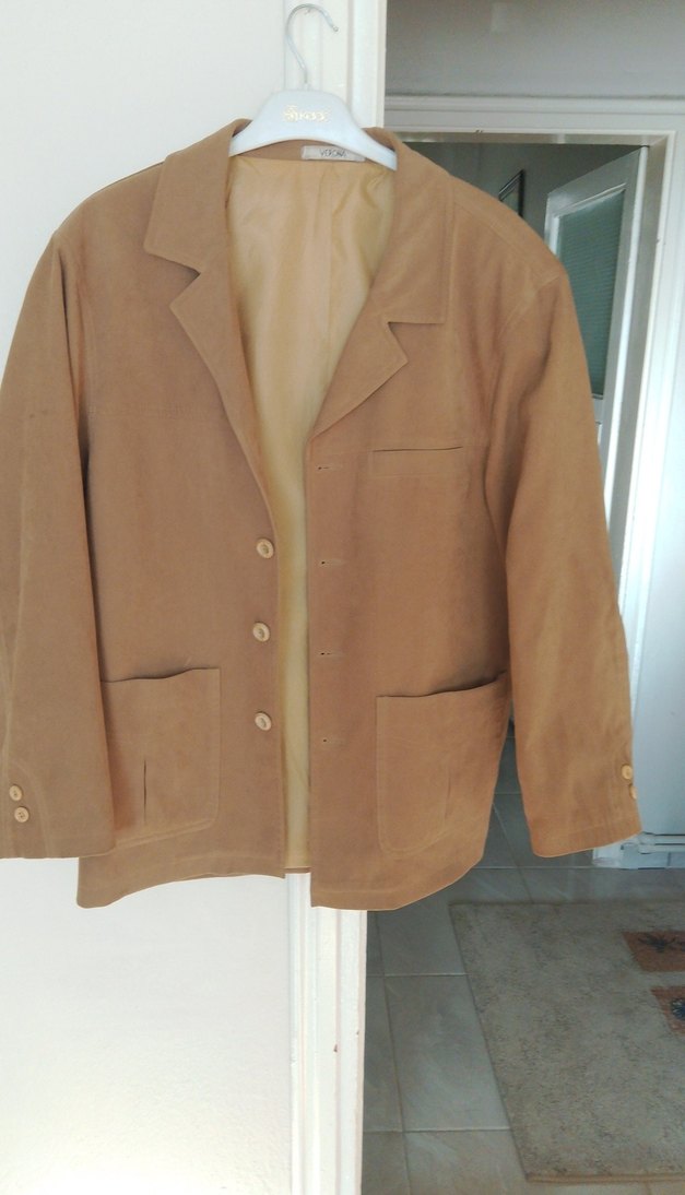 Bej Süet Erkek Ceket Düğmeli Midi Boy