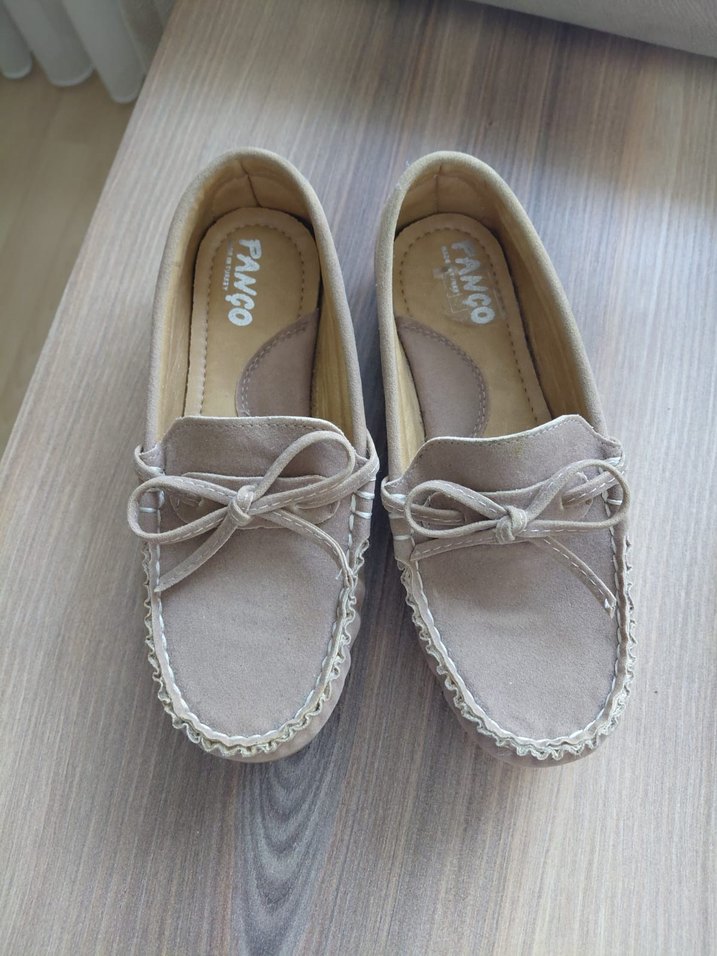 Bej süet, fiyonk detaylı, sade tasarıma sahip, günlük kullanıma uygun. Marka: PANCO.
