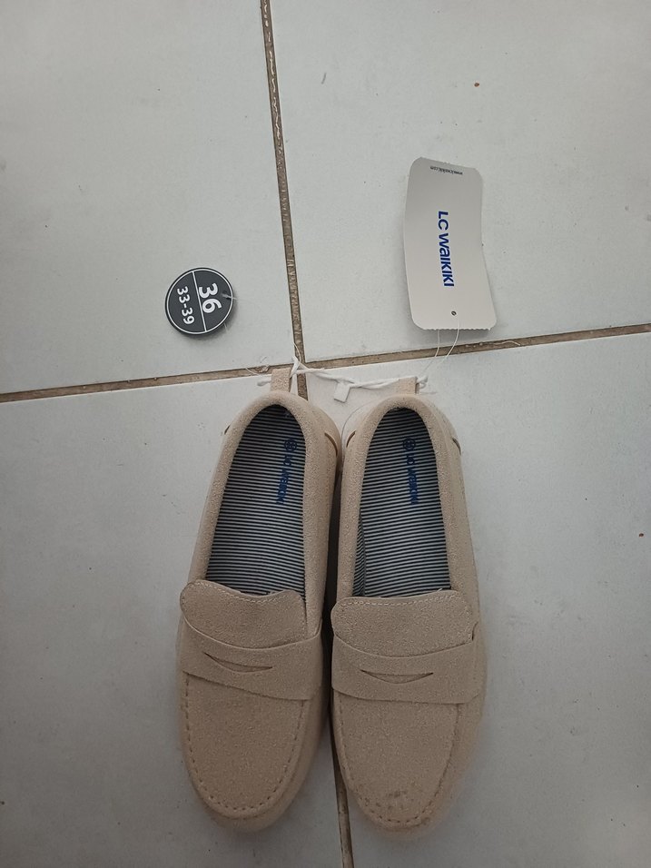Bej süet malzemeden yapılmış, cırt cırtlı kapamaya sahip, LC Waikiki markalı erkek çocuk özel gün ayakkabısı. Trendy ve normcore tarzda.