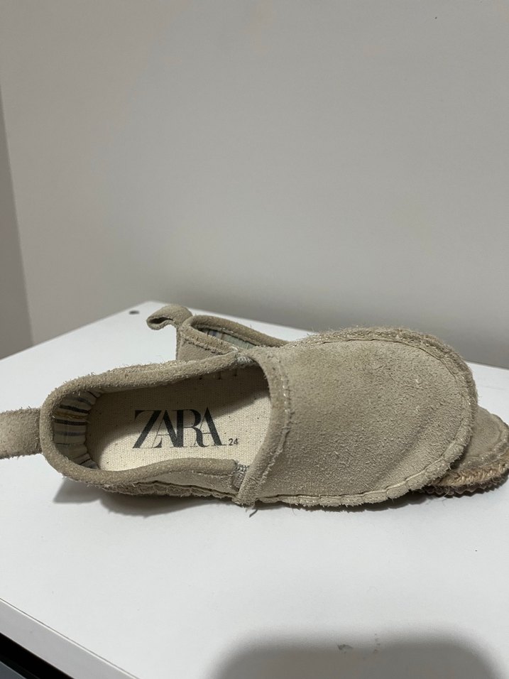 Bej süet erkek espadril, Zara markalıdır. Minimalist ve desensiz tasarımıyla günlük kullanıma uygundur, bohem tarzı yansıtır.