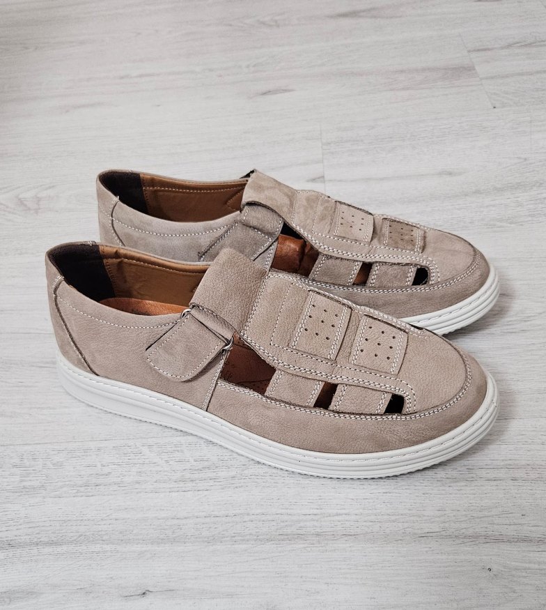 Bej nubuk hakiki deri erkek sandalet 42 numara sıfır ürün hiç kullanılmadı