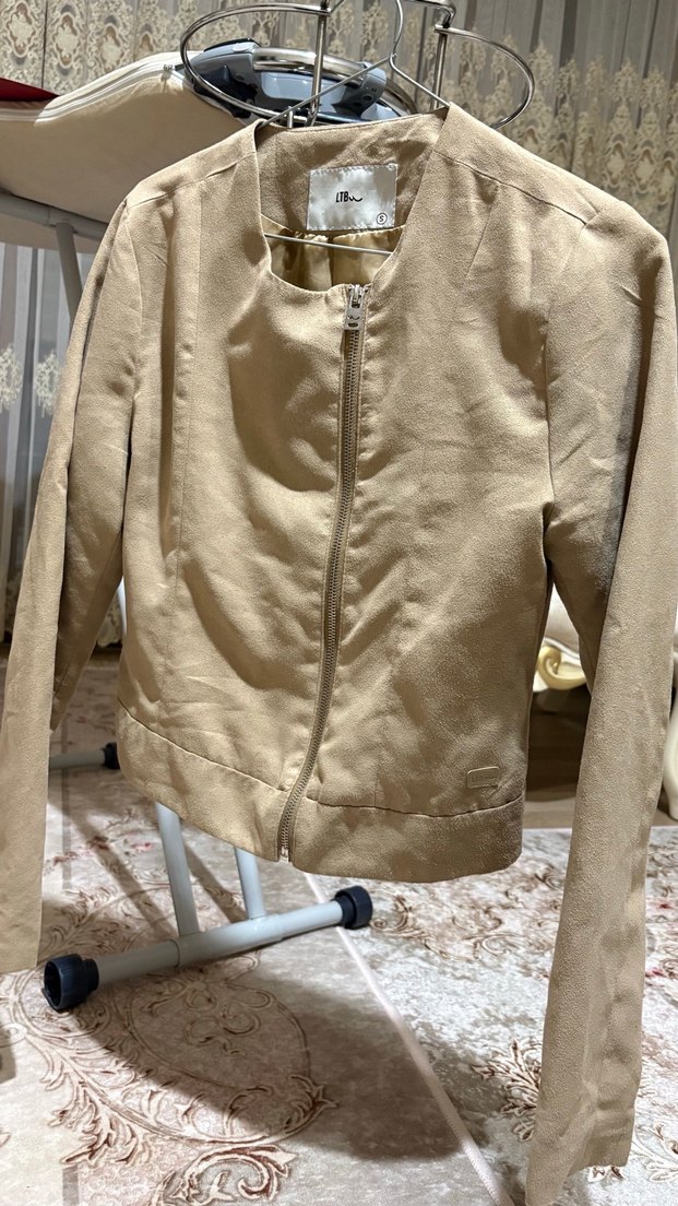 Yumuşak süet kumaştan yapılmış, fermuarlı ve kırlangıç yaka detaylı bej renkli kadın ceketi. Uzun kollu, midi boy ve Paris sokak modasına uygun şık bir model. ✨