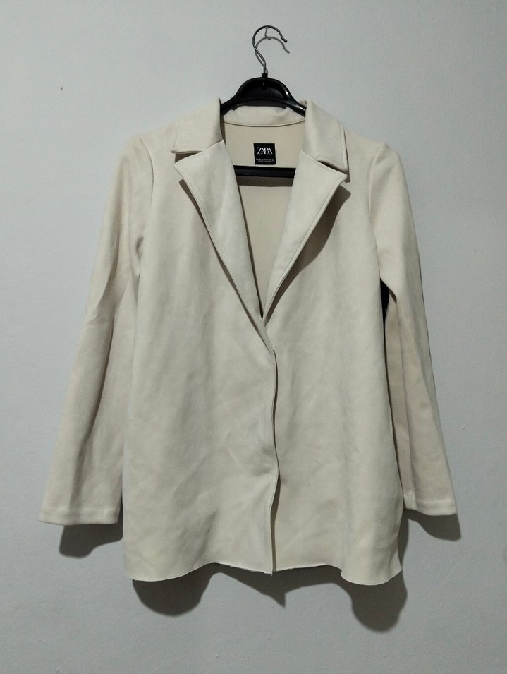 Bej süet kumaştan yapılmış, notalı yaka ve uzun kollu kadın blazer ceket. Normal uzunlukta ve regular fit kesime sahip, ofis ve günlük şıklık için ideal.