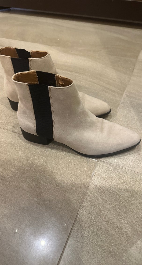 Bej süet malzemeden yapılmış,blok topuklu kadın botu. Günlük kullanıma uygun, çağdaş Paris tarzını yansıtır. Problemsizdir iç kısmında kullanmamaktan kaynaklı minik soyulma var görünmeyen yerde. Fiyata yansıtıldı.