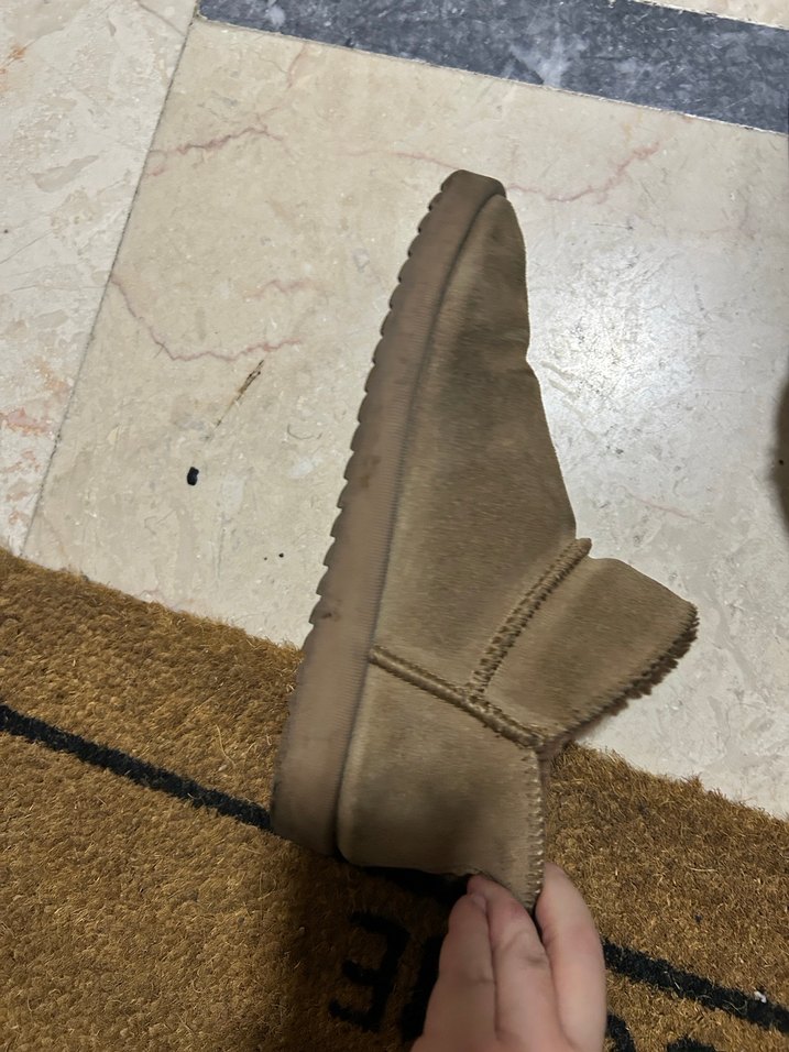 Bej süet malzemeden yapılmış, kürklü ve dolgu topuklu kadın botlarıdır. Rahat ve gündelik kullanıma uygundur.