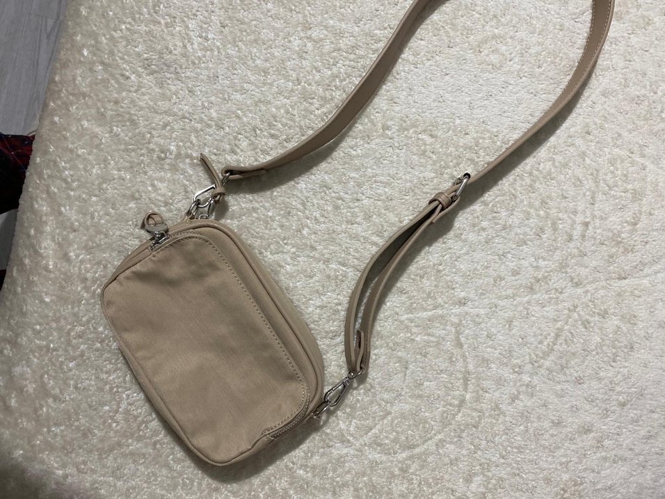 Bej süet malzemeden yapılmış, fermuarlı ve ayarlanabilir askılı kadın çapraz çanta. Minimalist ve desen içermeyen tasarıma sahiptir.