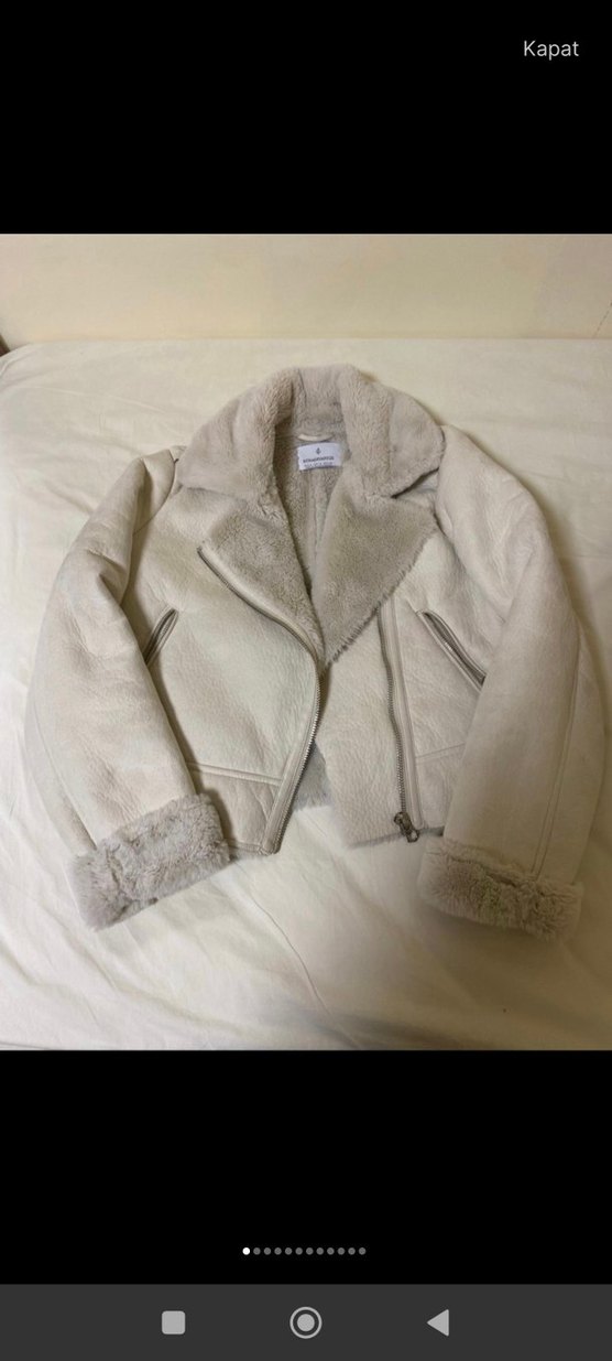 Bej süet kadın ceketi, kürk detaylı yaka ve manşetlere sahip. Notlu yakalı, uzun kollu, bol kesim ve midi boydadır, günlük kullanıma uygundur.