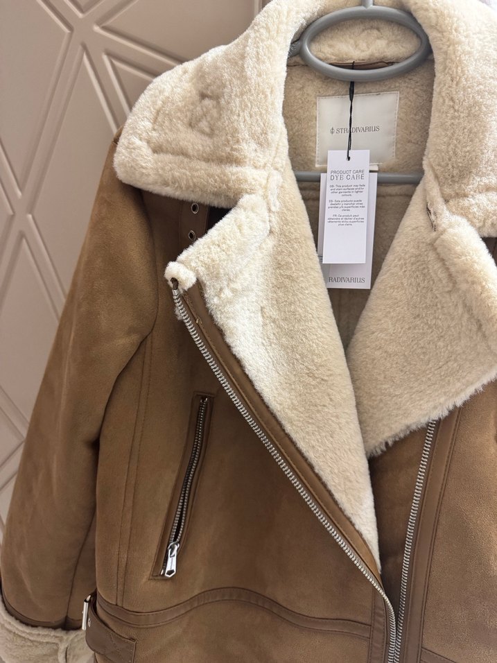 Bej süet ceket, kürk detaylı ve kesik yaka. Normal kesim ve askılı kol yapısıyla günlük kullanıma uygun, rahat ve sokak stili uyumlu. Hiç giyilmedi