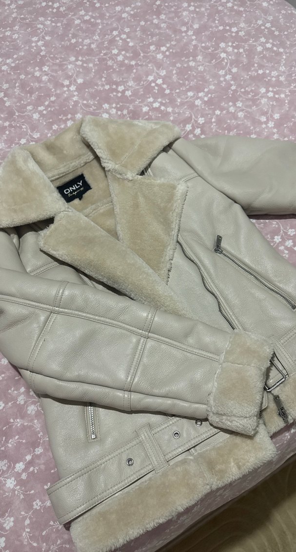 Bej süet kadın ceketi, kürklü notched yaka ve normal kesim detaylarıyla. Sokak stiline uygun, askılı kollu ve midi boyda, günlük kullanıma uygun.