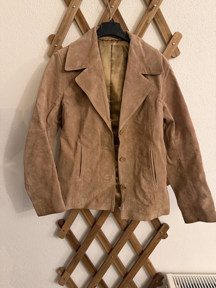 Bej süet kadın ceket, kesik yaka ve düğmeli ön yapıya sahiptir. Mini boy, regular fit ve askılı kolludur. Bohem Paris tarzını yansıtır. ✨