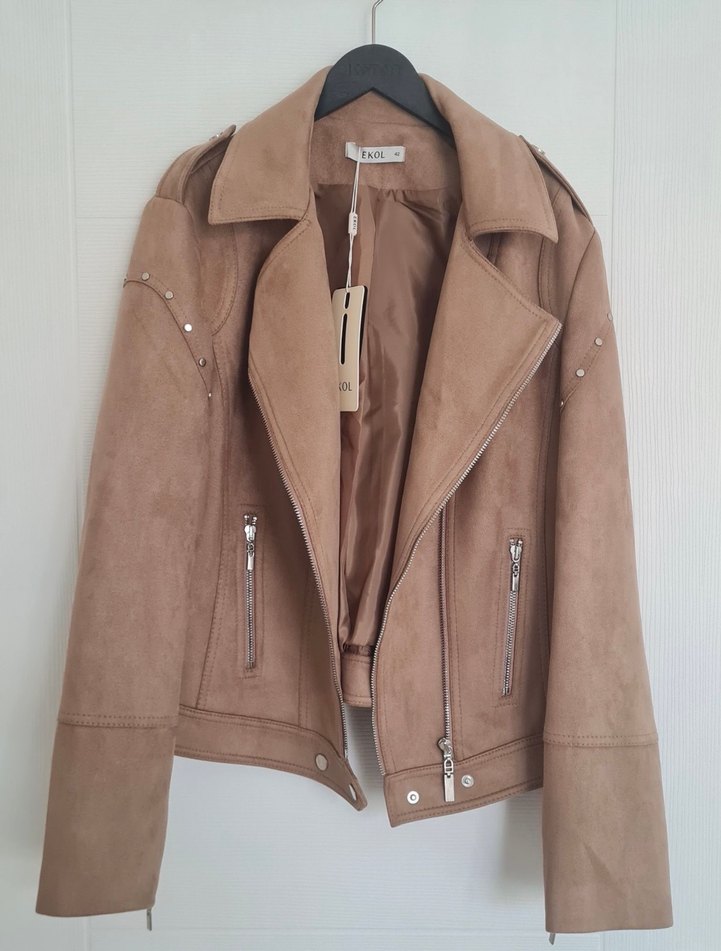 Bej Süet Kadın Deri Ceket