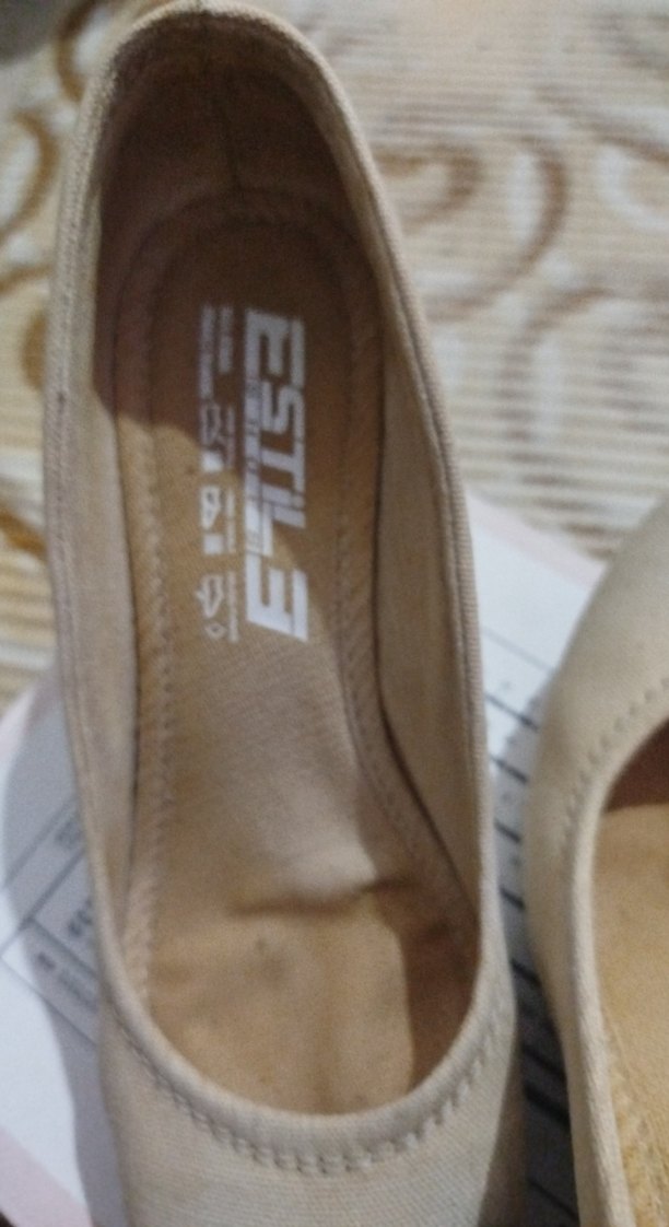 Bej süet kadın espadril, dolgu topuk ve elastik detaylı, baskılı deseniyle minimal ve trend rahat stil sunar. Günlük kullanıma uygundur.