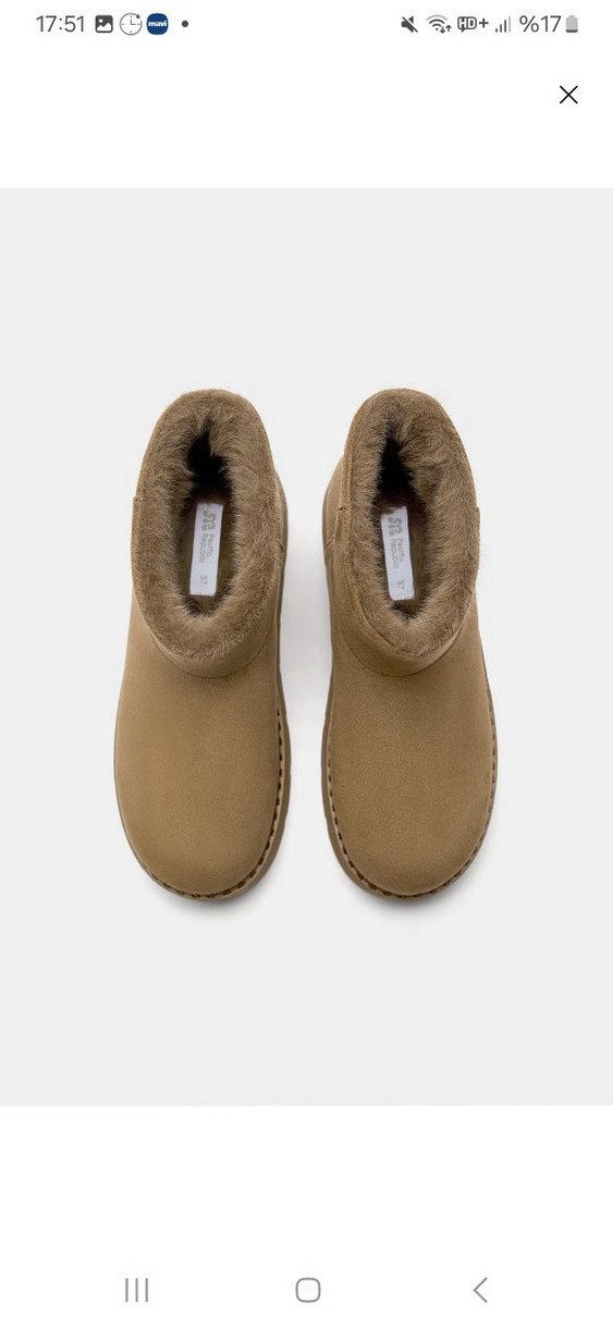 Bej süet kadın botları, dolgu topuklu ve iç kısmı kürklüdür. Rahat ve sade tasarımıyla günlük kullanıma uygundur. Yapıştırma izi gibi bir şey mevcut, görsellendi.