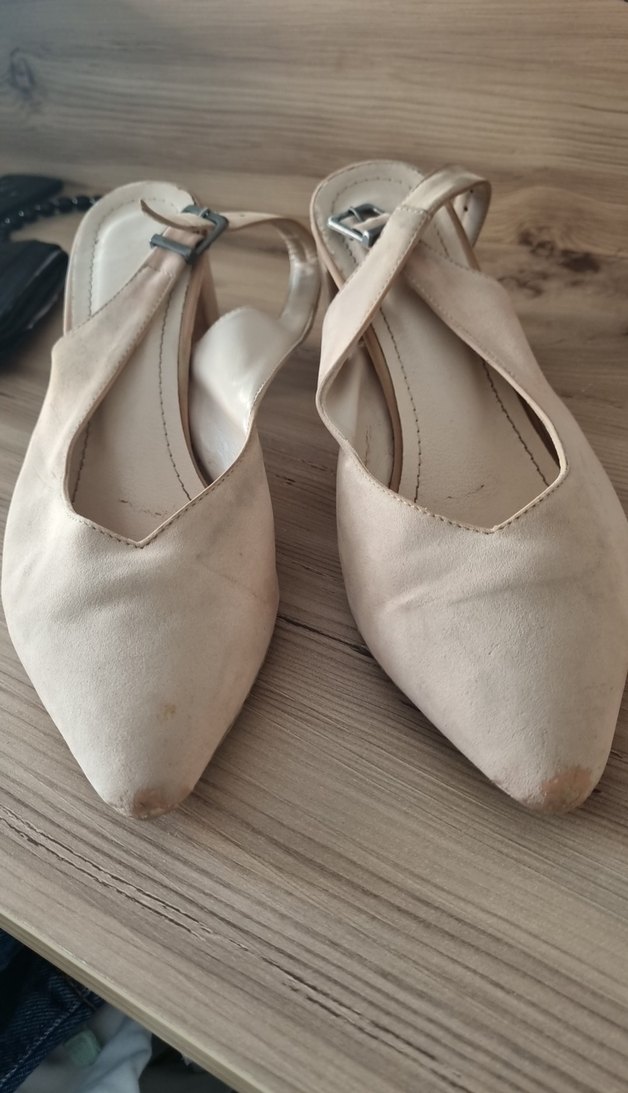 Bej süet kadın dolgu topuklu klasik ayakkabı, tokalı ve desen içermeyen sade tasarımıyla günlük kullanıma uygundur.