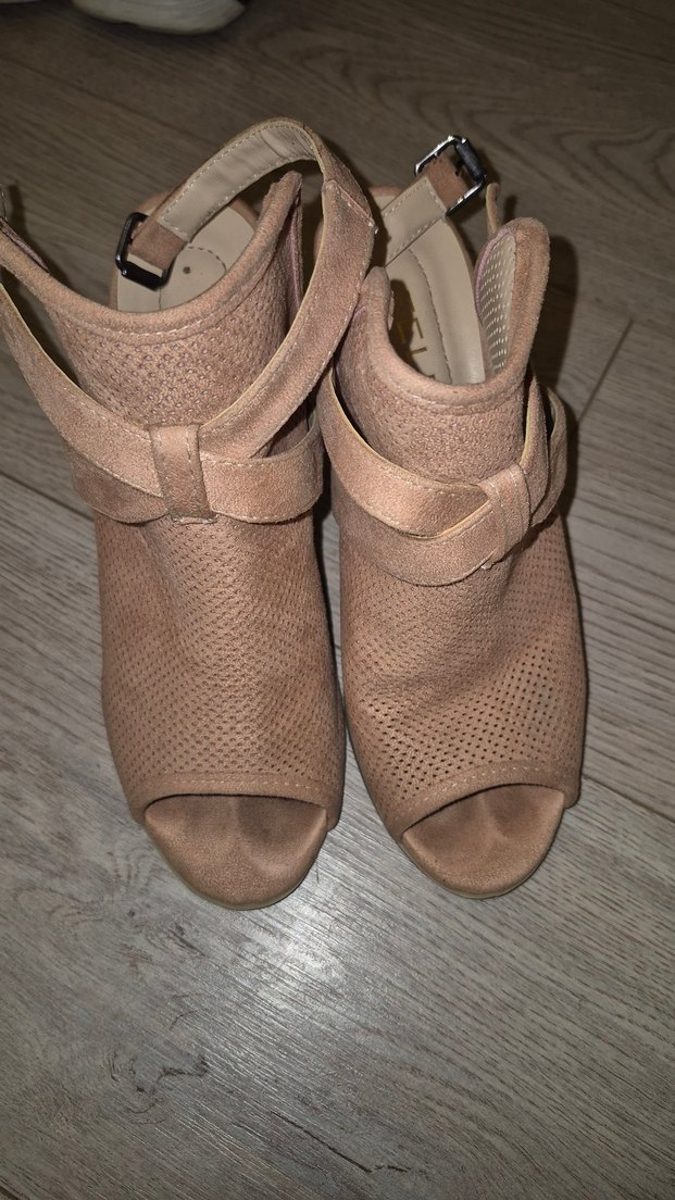 Bej Süet Kadın Dolgu Topuklu Sandalet