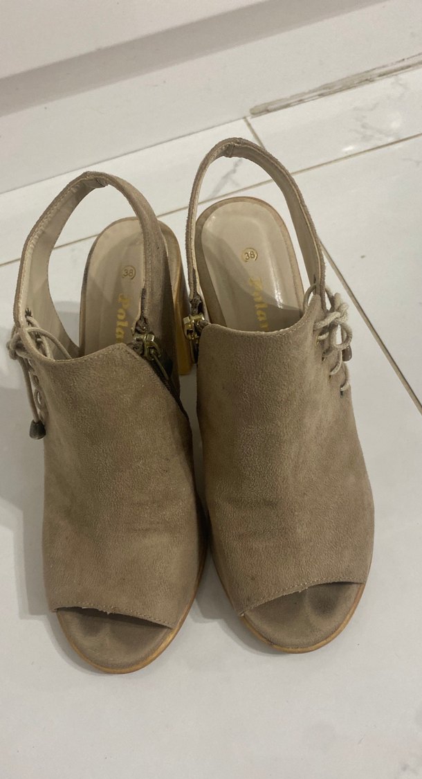 Bej Süet Kadın Dolgu Topuklu Sandalet