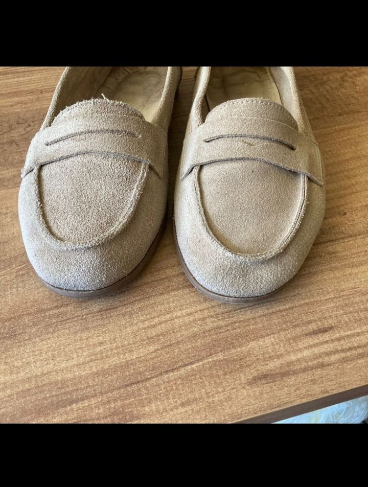 Bej süet kadın günlük ayakkabı, blok topuklu ve tokalı, rahat bohem tarzda günlük kullanım için uygundur.