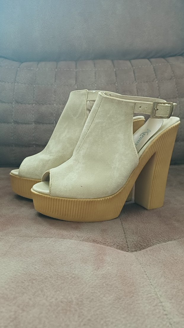 Bej Süet Kadın Platform Topuklu Ayakkabı