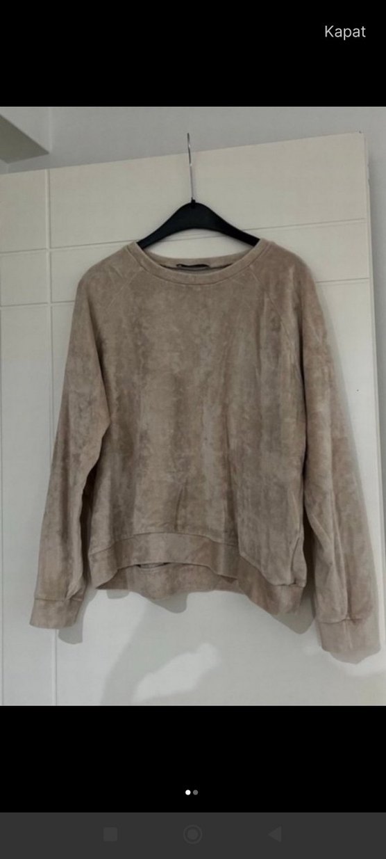 Bej Süet Kadın Sweatshirt Uzun Kollu polar