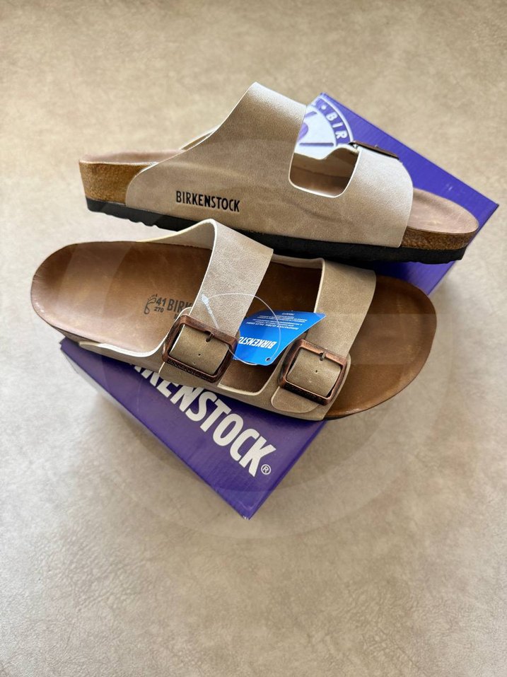Bej süet kadın terlikler dolgu topuklu ve tokalı kayışlara sahiptir. Günlük kullanıma uygun, baskılı desenlidir. Marka: Birkenstock. Birkenstock Arizona Bej ➡️ Kutulu, Etiketli 41-42-43-44-45