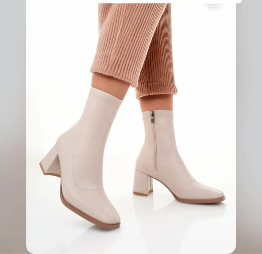 Bej süet kadın topuklu bot, blok topuk ve yan fermuar detaylarıyla günlük kullanıma uygun. Pastel tonlarda sade ve şık bir tasarım 39 40 numara mevcut