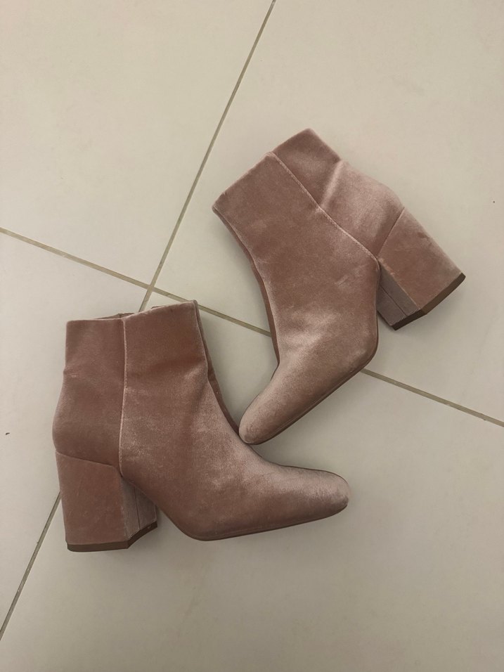 Bej süet kadın botları, blok topuklu ve rahat bir tasarıma sahip. Pastel renk ve desensiz yapısıyla günlük kullanıma uygun şık bir görünüme sahiptir.