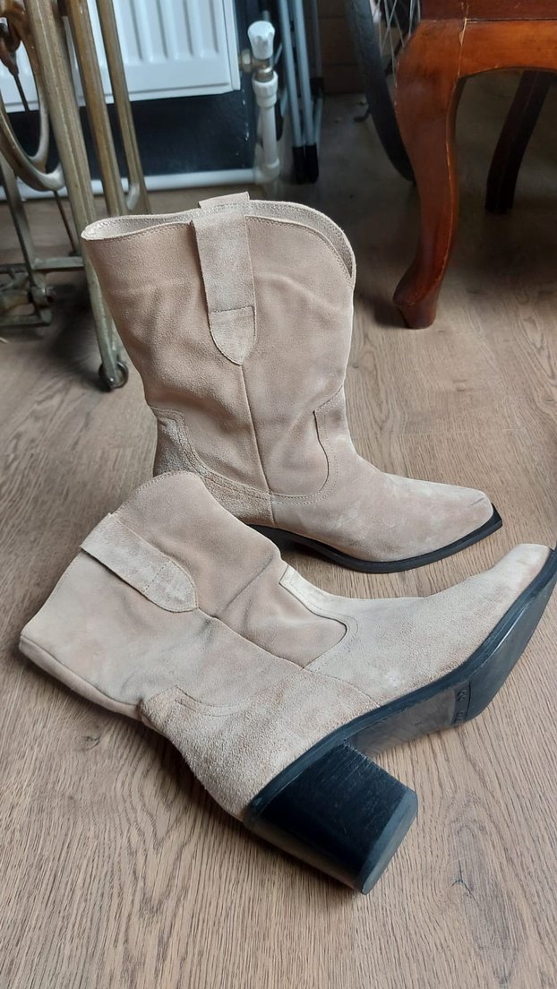 Bej süet kadın botları, kalın topuklu ve tokalı detaylıdır. Desensiz, rahat ve bohem tarzıyla günlük kullanıma uygundur.Markasi SIAMO iki defa giyildi.