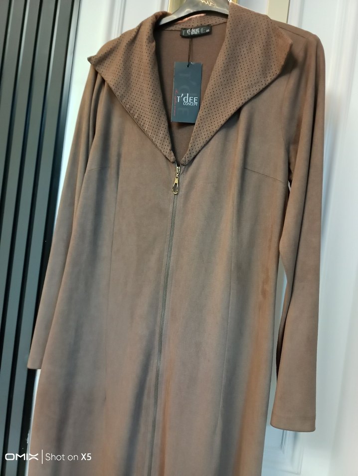 Bej Süet Kadın Uzun Fermuarlı Kaban - Görsel 1