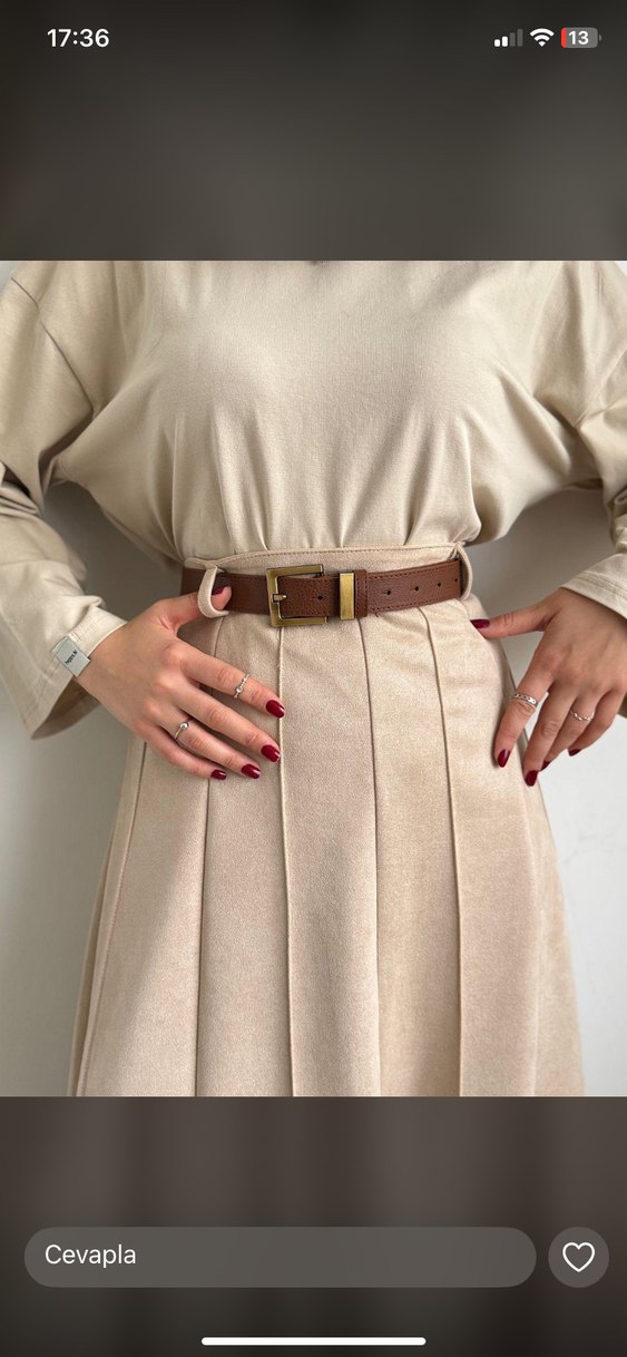 Bej süet kemer, kemerli tasarımıyla trendy casual ve street wear tarzlarına uygun. Açık renk ve klasik görünüm.