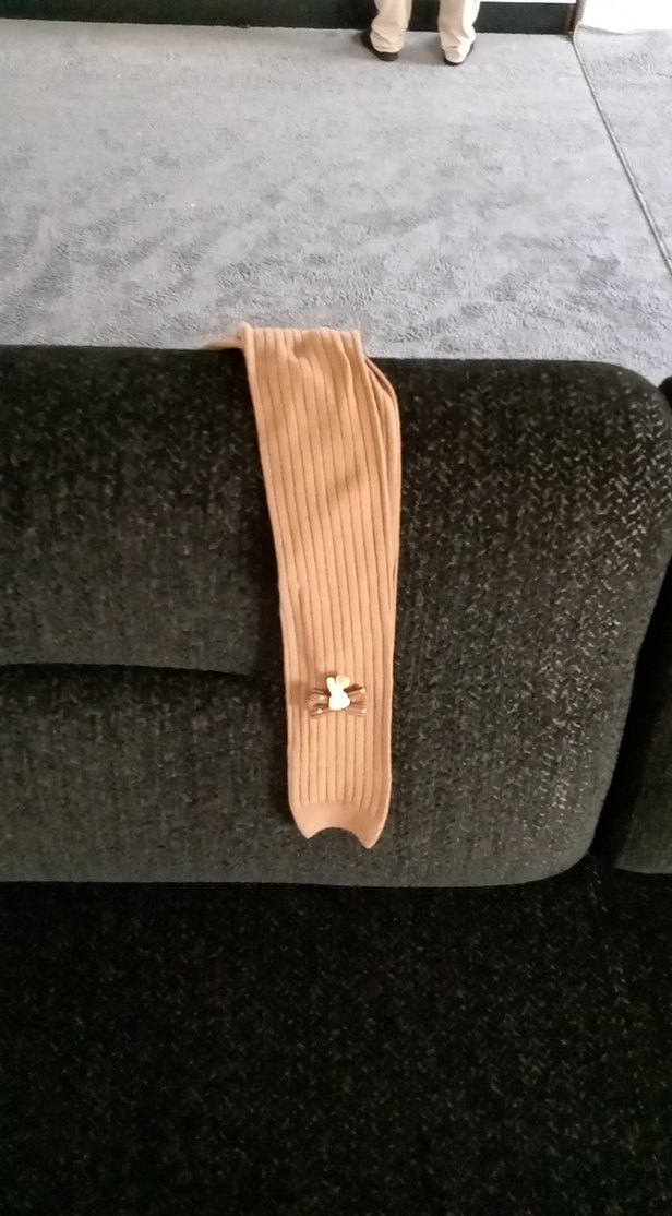 Bej renkte, süet görünümlü kız çorabı. Fitilli dokusu ve küçük fiyonk detayıyla yumuşak ve rahat.