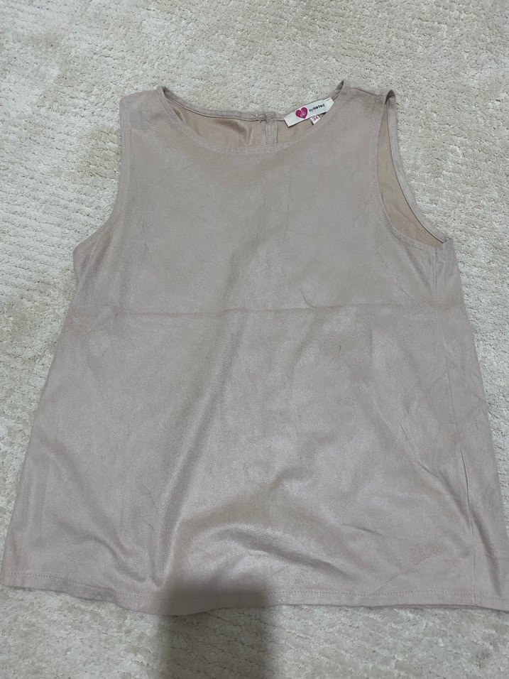 Bej rengi, süet kumaştan kolsuz kadın yelek. Sırtı V yaka ve bol kesim ile rahat bir kullanım sunar, günlük ve sokak stiline uygundur.