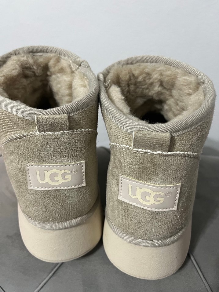 Bej süet, kürklü detaylı kadın botu, dolgu topuklu ve gündelik kullanım için uygun, trend sokak stiline uyumlu.