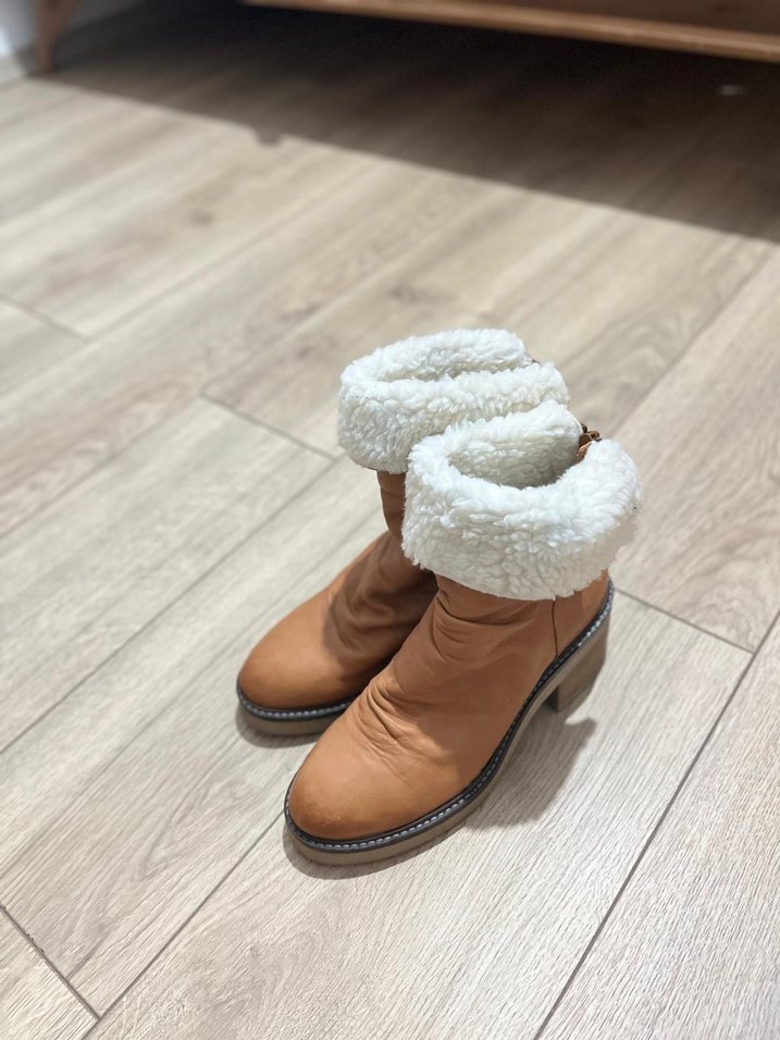 Bej Süet Kürklü Dolgu Topuk Kadın Bot sadece 2 kez giyildi