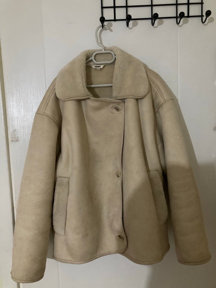 Bej süet kumaştan, kürklü detaylı yakası ve uzun kollu, bol kesim kadın ceketi. Midi boyda, sade ve günlük kullanıma uygun rahat bir modeldir.TAKAS DÜŞÜNEBILIRIM