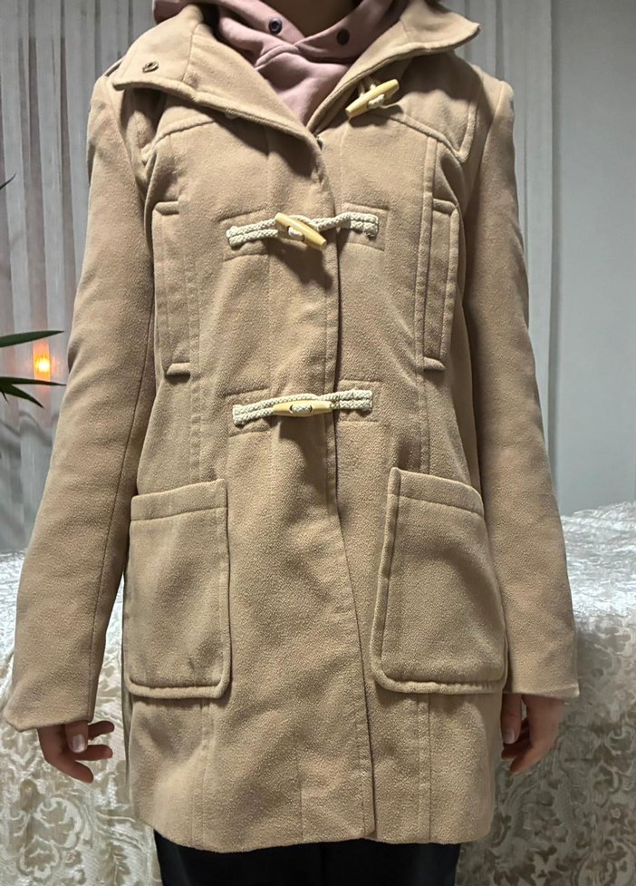 Bej renk, düğmeli kadın kabanı. L beden DEFACTO.