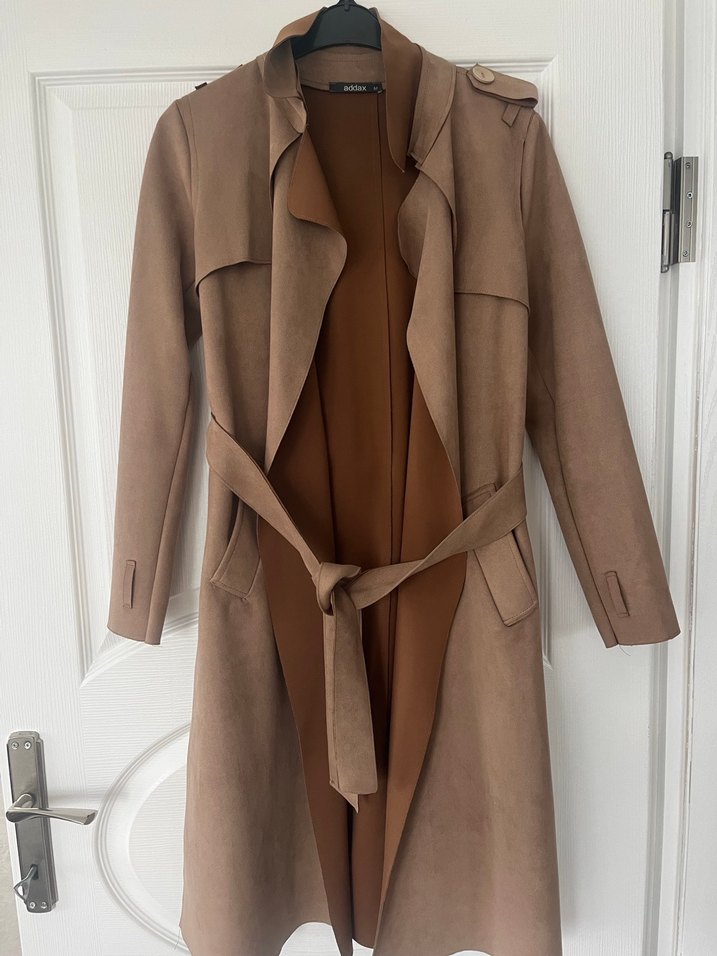 Bej Süet Midi Kemerli Kadın Trençkot