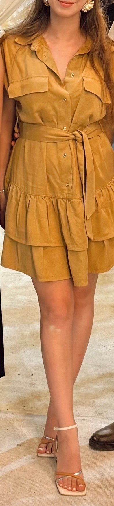 Yumuşak süet kumaştan, bol kesim bej mini etek, bohem tarzda fırfır detaylı. Günlük ve özel günler için bir çok farklı kullanım uygundur.