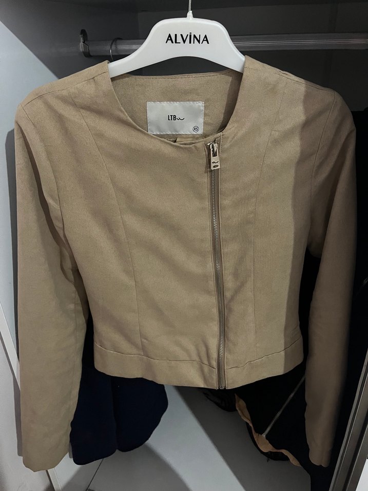 Bej Süet Mini Fermuarlı Kadın Ceket