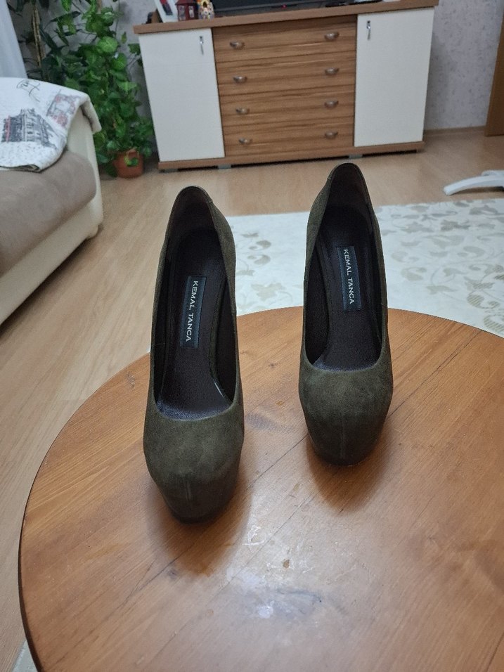 Bej süet platform topuklu, minimalist tasarımlı kadın ayakkabısı. Trendy casual ofis stiline uygun, desen içermeyen, rahat ve şık.arka topuk yüksekliği 13 cm on taraf 4 cm