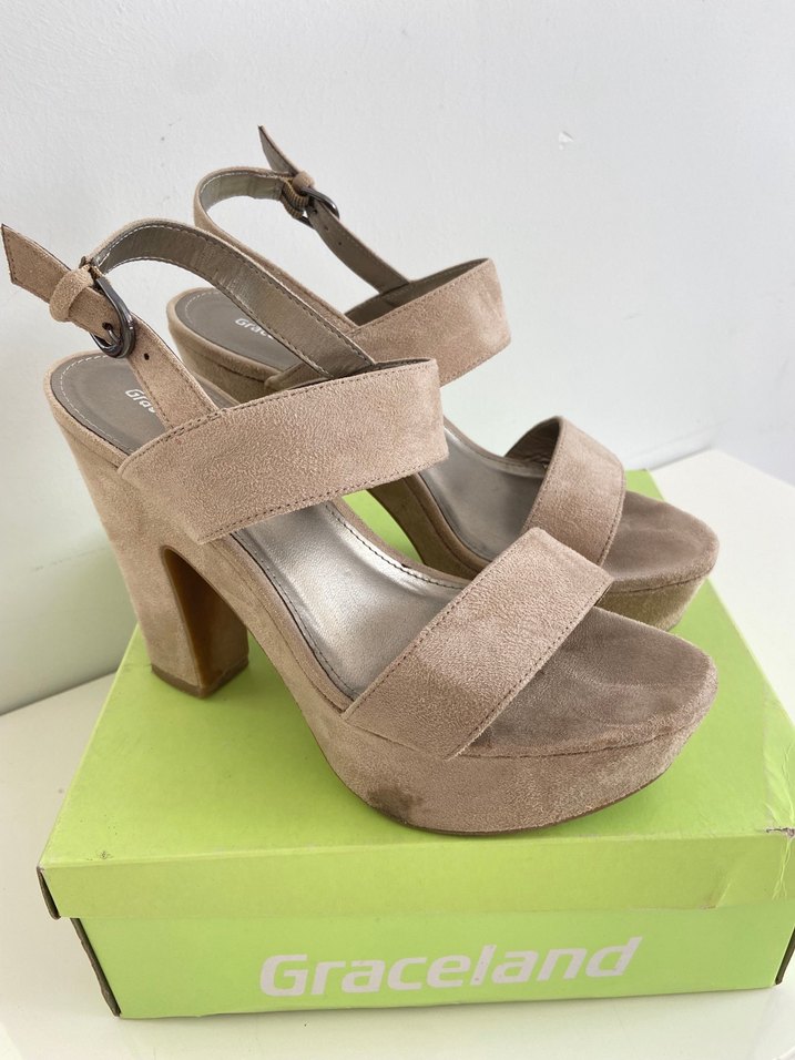 Graceland markalı, bej süet platform topuklu ayakkabılar, tokalı bantlı, minimalist ve çağdaş tasarıma sahip günlük kullanıma uygun. Bir kez giyildi. Makul teklifler değerlendirilecektir... #ayakkabı #topuklu #ince # kalın #dolgu #deri #süet #nubuk #klasik #spor #sandalet #terlik #platform #oxford #loafer #dolgutopuk #siyah #beyaz #kahve #espardile #stiletto #günlük #bayan #kadın #sneaker #pullandbear #bershka #stradivarius #mango #nike #lcw #newblance #elle #hotiç #yaya #harleydavidson #adidas #koton #lcwaikiki #adl #mavi #zara #hm #h&m #reebok #kinetix #bambi #flo #polaris #elbise #mont #kazak #tşört #swetshirt #bluz #hamile #giyim #kıyafet #tunik #gömlek #kaban #ceket #blazer #palto #kaşe #gece #abiye #pantolon #kot #eşofman #tayt #şal #şapka #eldiven #takı #mini #midi #uzun #kısa #desenli #çizgili #takip