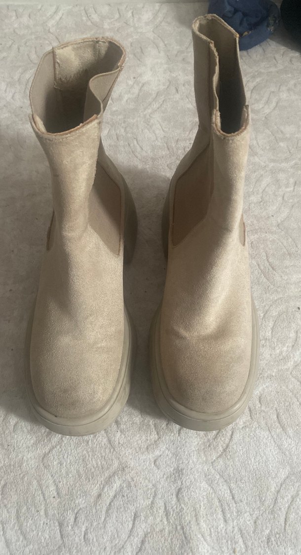 Bej süet kadın botları platform topuklu, rahat ve normcore tarzıyla günlük kullanıma uygun. Trendy casual kombinlere zahmetsiz şıklık katıyor.