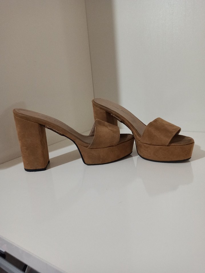 Bej süet platform topuklu terlikler, minimalist ve desensiz tasarımıyla günlük kullanıma uygun, bohem ve retro tarzlara uyum sağlar. Rahat ve şık