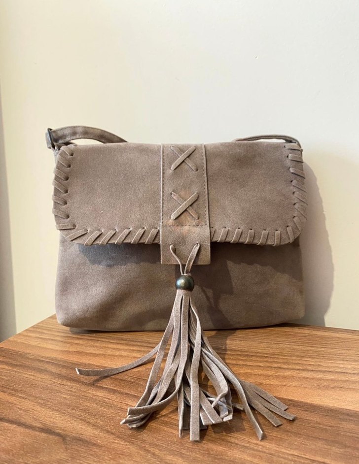 Bej Süet Püsküllü Bohem Kadın Çanta