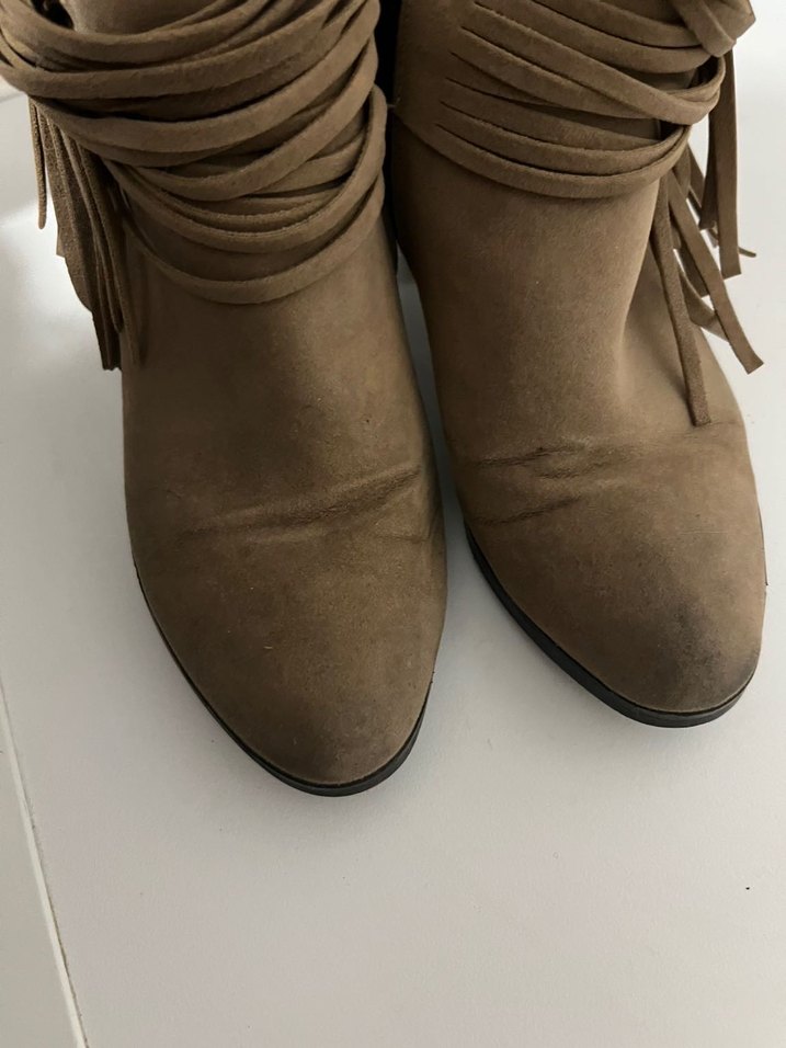 Bej Süet Püsküllü topuklu Bot