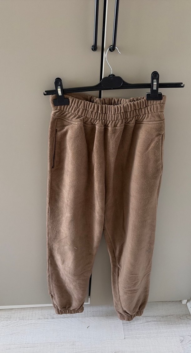 Bej Süet Rahat Kesim Kadın Eşofman Altı