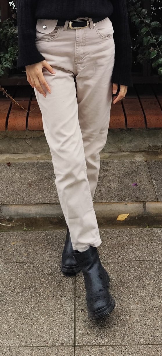 Bej renkte, rahat kesim ve süet kumaştan yapılmış, günlük sokak stiline uygun kadın pantolon. Normal boy ve desensiz tasarıma sahiptir.