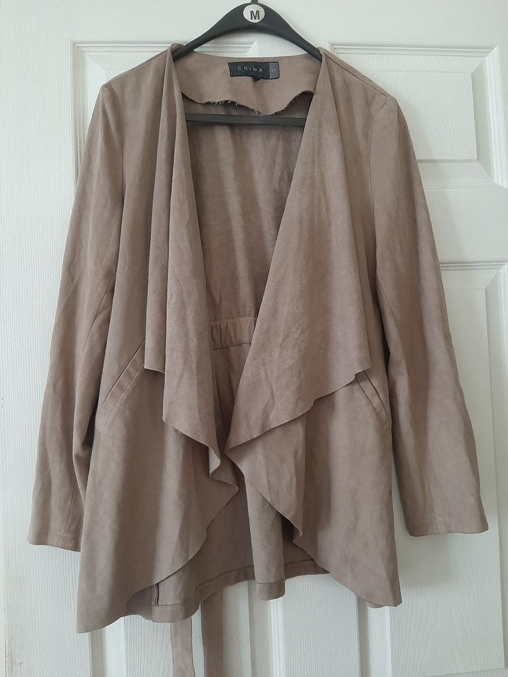 Bej süet kumaştan, salaş kesim ve notched yaka detaylı midi uzunlukta hamile ceketi. Uzun kollu ve desen içermeyen bohem tarzda, günlük rahat kullanım için uygundur.