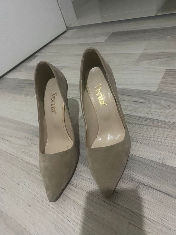 Bej süet stiletto topuklu, sivri burunlu klasik tasarım. Venta markası, ofis için uygun, zahmetsiz şıklık sunar.